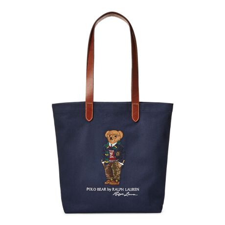フルグレインレザーのハンドルで仕上げたコットンツイル製の使い勝手の良いショッパートート。シグネチャーのプレッピールックをまとったアイコニックなマスコットが特徴。・レザーのトップハンドル2本・オープントップ・前面にPolo Bear by Ralph Laurenとラルフ・ローレンのサインの刺繍・レザートリム