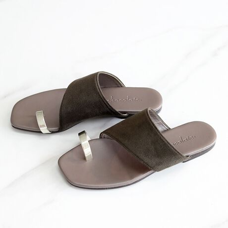 トレンドのトングデザインが目をひくフラットサンダル。