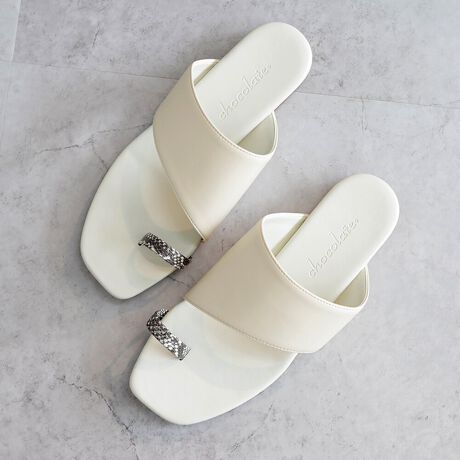 トレンドのトングデザインが目をひくフラットサンダル。