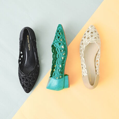 カットワークデザインが華やかなフラットシューズは、丸みを帯びたポインテッドトゥと履き口のスカラップデザインでフェミニンさをプラス。