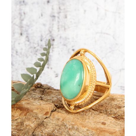 【フランス買付のヴィンテージ天然石リング】クリソプレーズは古代ローマの時代から装飾品に加工され愛され続けてきました。「緊張や焦りを静めて、自信を与える石」と言われています。