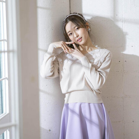 お顔周りが一気に華やぐ刺繍とビジューが目を惹くお上品ニット。