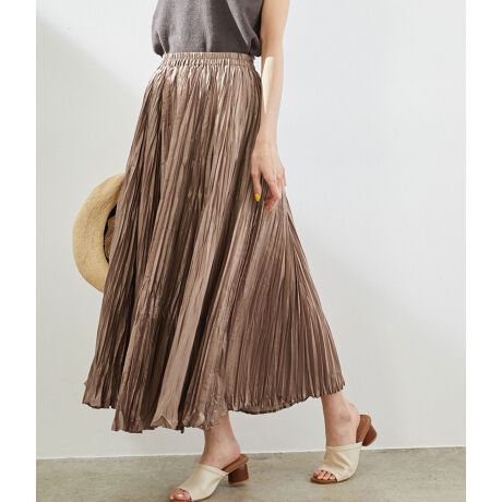 ・光沢感が上品さを引き出す、クリンクル加工のロングスカート。