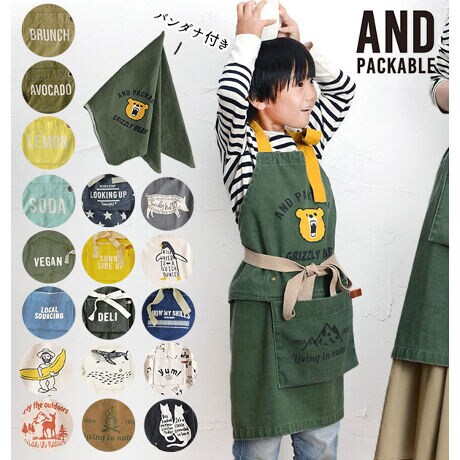 アンドパッカブルキッズエプロン バンダナ付き