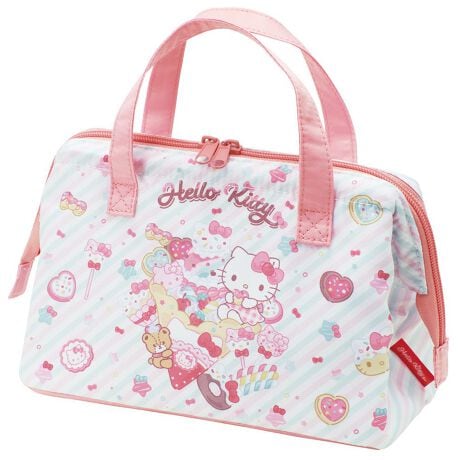ダブルファスナーで開け閉めしやすい、がま口タイプのランチバッグです。かわいいキャラクターの柄で、キッズのお弁当を入れるのにぴったりです