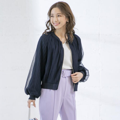 プリーツ仕立ての軽やかなチュール生地がエレガントで洗練された印象のブルゾン。