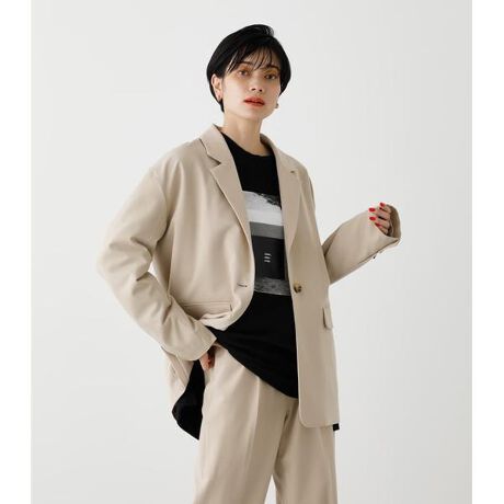 2021 Spring&Summer item・ポリエステルレーヨンのツイル素材を使用しています。レーヨン特有の落ち感があり抜け感のある雰囲気となっております。・ゆったりとさせたシルエットと柔らかいニュアンスカラーが、女性らしい印象を与えてくれるテーラードジャケット。・かっちりしすぎない素材感が着心地良くデイリーにお使い頂けます。<コーディネート>・250ESS31-008B CENTER PRESS PANTSとのセットアップがおすすめ。