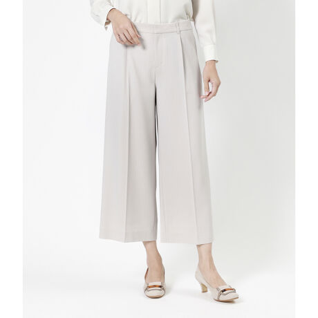 【ウォッシャブル】ポリエステル セミワイドクロップドパンツ(ベージュ/裏地付き)