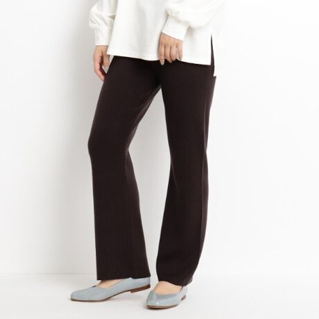 総針編みですっきりさせているのでニットですが重い印象がなくキレイで、ニットの伸縮性が着心地快適なパンツです。