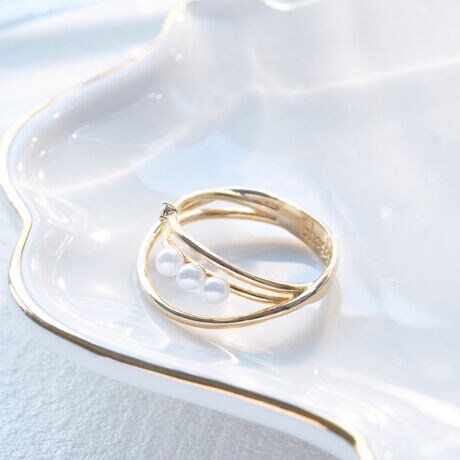 ゆったりとしたシルエットのリングに、3石のパールとビジューがさり気なく輝きを添えます。