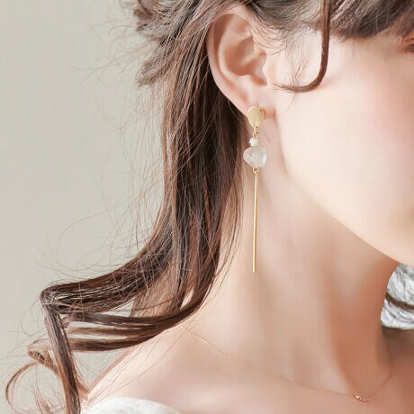 すっきりとしたメタルバーを繋ぐことで、揺れ感をプラスした爽やかなピアスです。