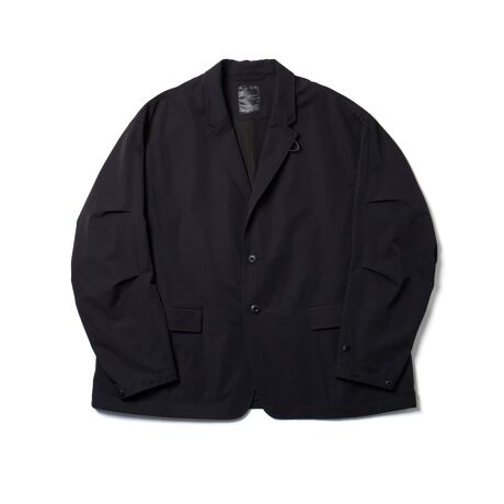 ストレッチ性の高いポリエステル生地を採用した、オーバーサイズテーラードジャケット。