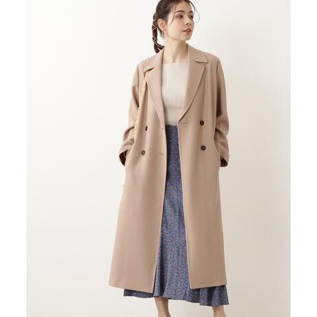春カラーが上品な印象を与えるチェスターコート。広がりを抑えた縦のラインですとんとしたシルエットを演出します。後ろはベンツが入っており、着丈が長くても歩きやすいよう仕上げています。ダブル釦もアクセントになり、前を開けてもきれいな印象のまま羽織れます。総柄ワンピース、シンプルな着こなしにも合わせれるスプリングアウターです。