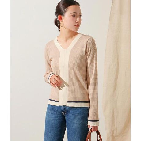 すっきりとしたVネックは、デコルテラインをキレイに魅せ、女性らしいナチュラルな雰囲気を演出してくれます。