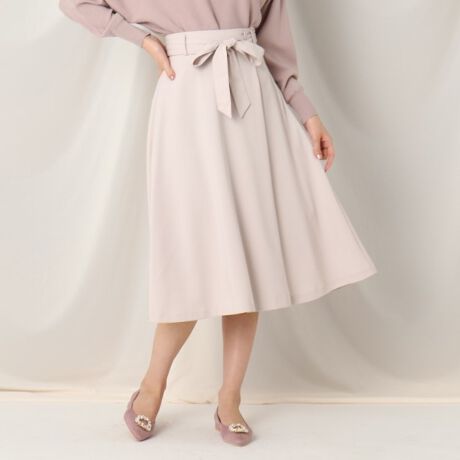 ウエストリボンが愛らしくメリハリ感をプラスするラップ風フレアスカート。