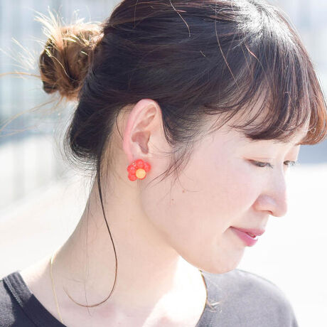ころんとしたサイズ感が可愛らしいフラワービーズピアス。マルチなカラーリングは、耳元にさりげないアクセントをプラスしてくれます。