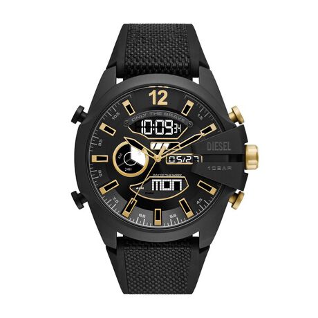 51mm径のケースにアナログ/デジタルムーブメントを搭載したMEGA CHIEF ウォッチ。バーインデックスを配したブラックのサンレイダイヤルに、ブラックのナイロンとシリコンのストラップを組み合わせました。