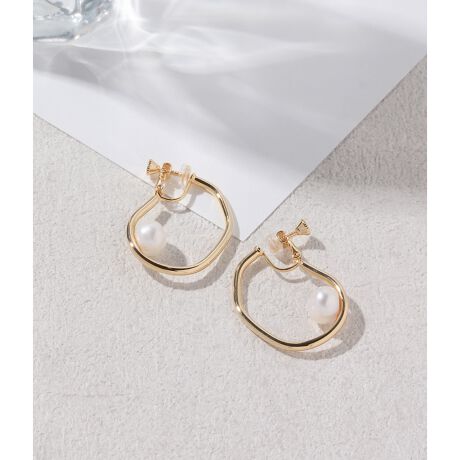 淡水パールニュアンスフープイヤリング