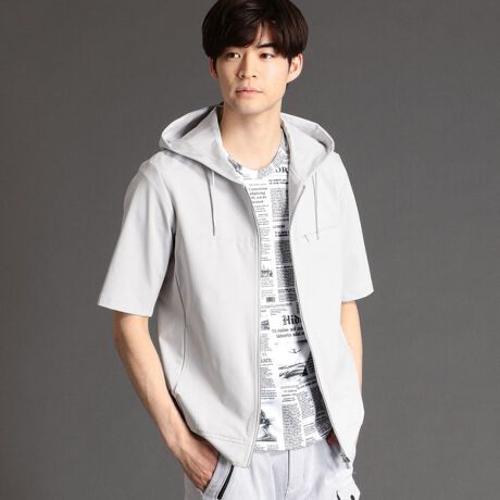 ハイダウェイの5分袖ナイロンフルジップパーカー。