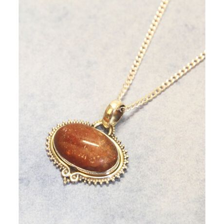 【ヴィンテージ1点もの天然石】ゴールドサンドストーン楕円ネックレス