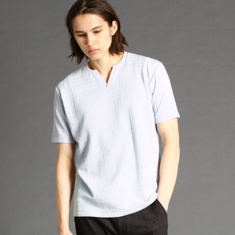 凹凸感で表現したチェック柄が特徴のジャカードTシャツ。