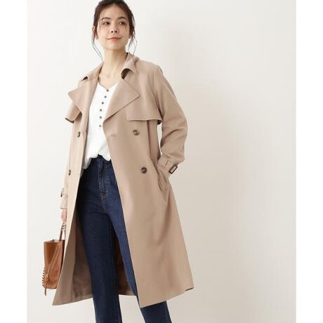 季節の変わり目にぴったりなトレンチコート。端正なシルエットで広がりを抑えたベーシックなデザインです。共布リボンでウエストマークもできますが、前を開けたままでもスッキリと着られます。背中のヨーク部分を立体的にすることで動きやすく、後ろ姿にメリハリを作り大人な見え感に仕上げています。スカートにもパンツにもボトム合わせがしやすい丈感、シンプルなデザインなのでON/OFF両方で活躍します。