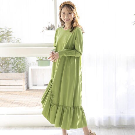 関連ワード:マキシ ロング ミモレ丈 フレアライン シンプル ナチュラル キレカジ フェミニン ガーリー エレガント 無地 ワンポイント