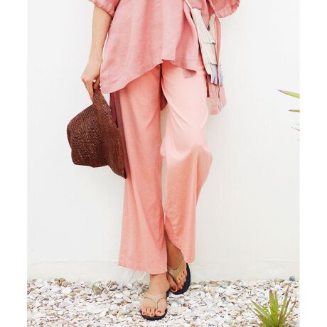 毎年人気の素材を使用したストレッチワイドパンツです。リネンを使用しているのでさらっとした着心地で春夏にぴったり。昨年よりワイド部分の分量を減らしているので、よりすっきり着こなしていただけます。また、後ろゴムもうれしいポイント。シンプルなデザインでトップスを選ばずに着こなして頂けます。カラーは爽やかなホワイト系(#001)、コーディネートを引き締めるブラック系(#005)、優しい印象のベージュ系(#033)、大人カジュアルコーデに欠かせないカーキ系(#054)、どんな色とも合わせやすいネイビー系(#075)の色展開に、新色のWEB限定パープルピンク(#080)とピンク(#012)を追加しております。