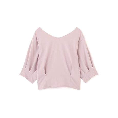 シルクのような光沢のあるシルケット加工を施したきれい見えする天竺カットソー。身頃は短丈でコンパクトなサイズ感、袖にはぐるりと一周タックを入れた今季らしいボリュームスリーブが特徴。裾にはダーツを入れて、ボトムにINしなくてもコーディネートが決まるようデザインしています。スクエアネックとVネックの前後2wayデザインで着回しできる優れもの。襟ぐりをキレイに仕上げているので、通勤スタイルにもおすすめです。