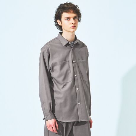 今季も外せないミリタリーアイテム、CPOシャツをノーカラーにした新鮮なデザインのアイテム。落ち感のある生地で身幅を大きくとりドロップショルダーを採用しています。程よい抜け感のあるビッグシルエット。
