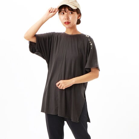 オーバーサイズの感じも、片裾を結んでアレンジ出来るデザインも良い。