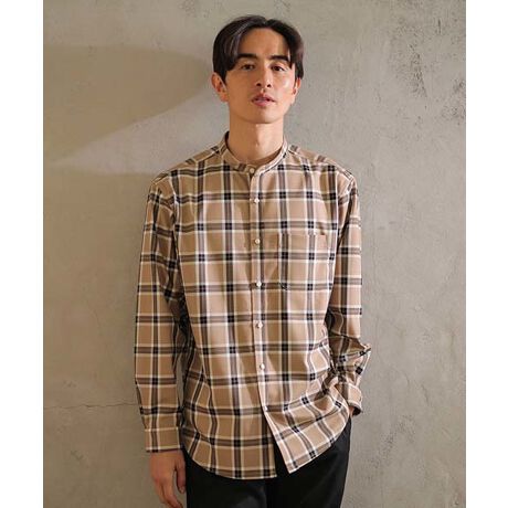 バンドカラーシャツなので、首元もスッキリと着られます。