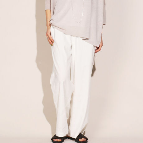 バイオリネン素材で爽やかな雰囲気のパンツ。今年らしいワイドシルエットで、トレンド感ある着こなしが決まります。ウエストゴムで、はき心地楽で毎日の着こなしで活躍します。下着が透けるのを防ぐインナーキュロット付きで、透け感を気にせず着こなせるのも嬉しいポイントです。
