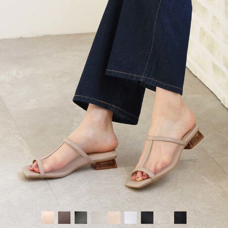 【25春夏新作カラー追加】スクエアトゥチュールクリアヒールサンダル