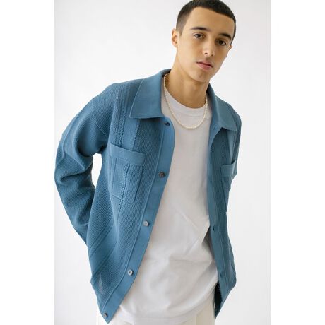 ドライタッチなコットンを使用したニットシャツカーディガン。