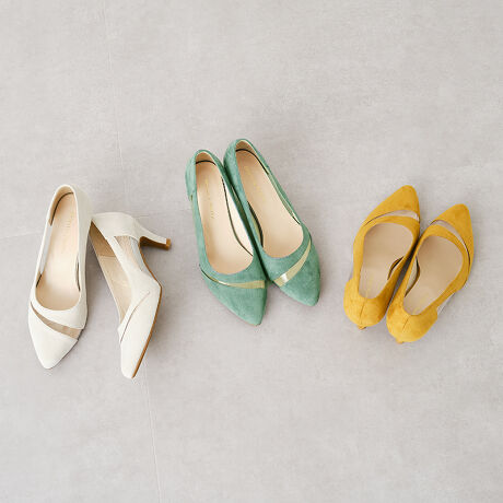 PVC×スエード素材のコンビネーションでメリハリをつけた春夏らしいパンプス。