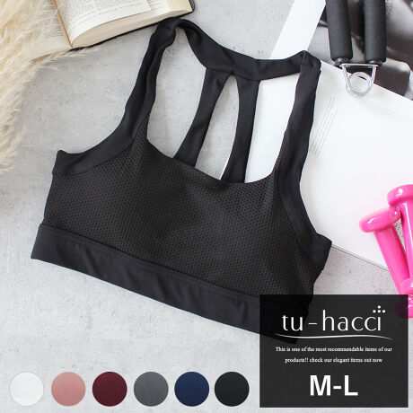 クロスデザインを加えたレーサーバックで、モードな肌魅せはもちろん、背中あきトップスとのレイヤードも楽しめます。