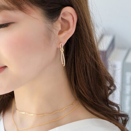 縦長のすっきりしたモチーフに、キュービックジルコニアを贅沢にあしらった華やかなピアスです。
