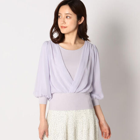 重ね着風シフォンニット