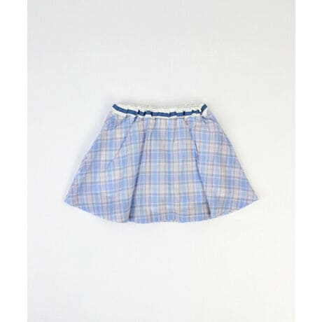 [型番:14293537]爽やかなチェック柄とたっぷりフレアのシルエットがかわいいインパン付スカート。1分丈のスカッツです。脇にはゴム替え口付。サイズはベビーサイズからキッズサイズまで取り揃えています。色展開はイエローとブルーの2色展開です。新作夏物の商品です。