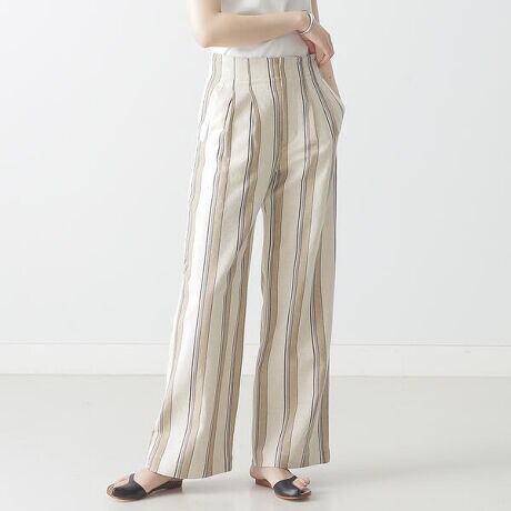 ストライプ柄が印象的なワイドパンツ。コーディネートに合わせやすい2色でご用意しました。