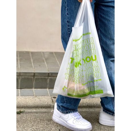 生分解性で土へ環る、50枚入りショッパーバッグです。