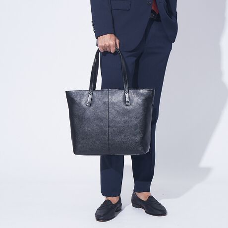 オンオフ兼用、ビジネスからカジュアルまであう汎用性の高いデザインに仕上げています。シンプルなデザインながらハンドルに打ち込んだカシメなどがアクセントに。A4ファイルが楽々収納できます。