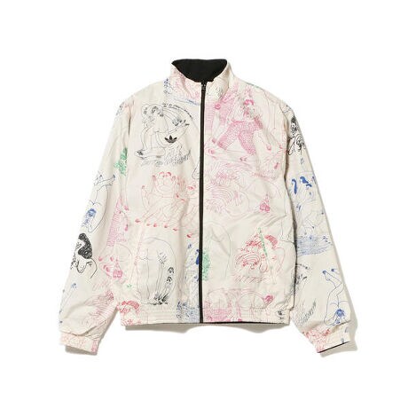 オフホワイトの生地に大胆なグラフィックが映えるリバーシブルジャケットは<UNITY SKATEBOARDING>と<adidas originals>とのコラボレーションアイテム。もう一面はブラックにクリーム色のワンポイントと派手すぎないデザインになっており、その日の気分やコーディネートに合わせて着用していただけます。