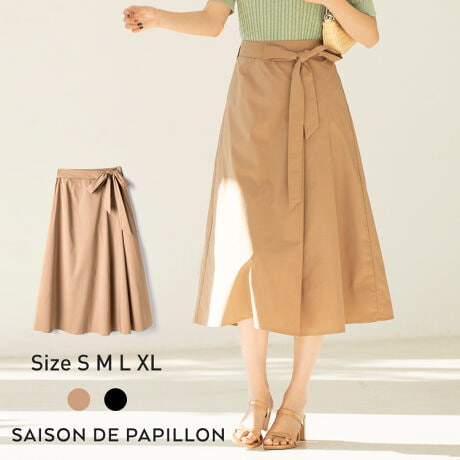 付属のリボンベルトでフェミニンさが増すボリューミーなサイドタックタイプライター・クロススカート。