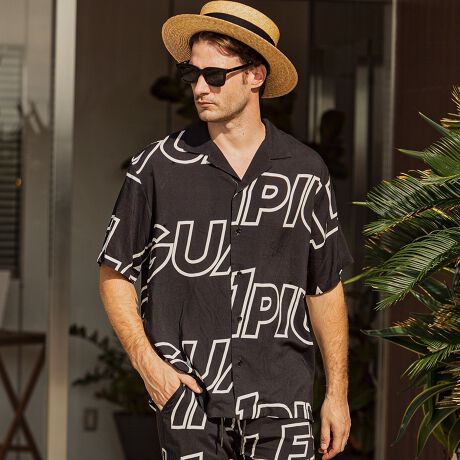 リゾートウェアの印象が強いアロハを同ブランドらしいモノトーンで配色することでシティにも映える大人なアイテムに昇華しました。