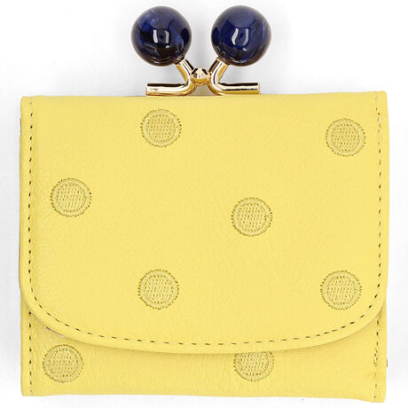 がま口部分のアクリル玉がかわいい3つ折りミニ財布。