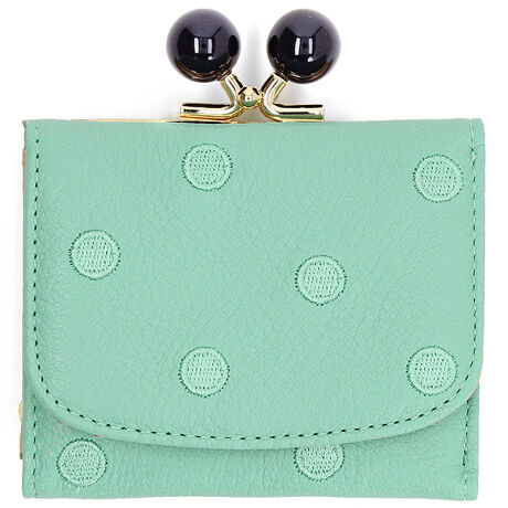 がま口部分のアクリル玉がかわいい3つ折りミニ財布。