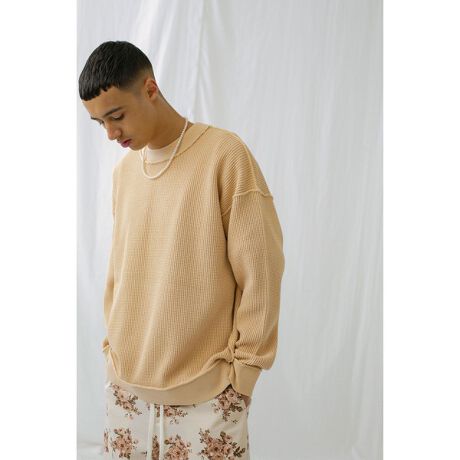 これからの時季に着用できる薄手のスウェット感覚のワッフル素材を使用。