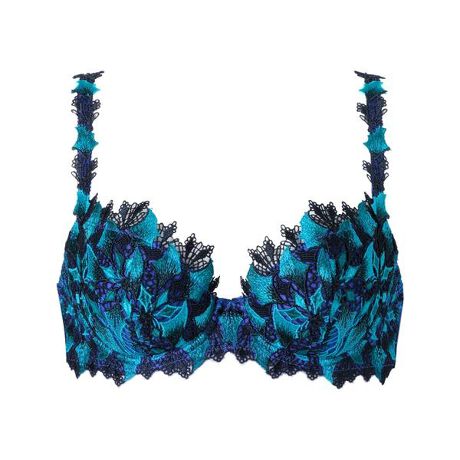 ・水面のきらめきをプリズムのモチーフが拡散していくイメージで華やかに表現したレースを使用・土台下辺のレースが身につけることで、さらに華やかに際立つゴージャスなデザイン・まるく高さのあるシルエット・伸縮性のある、つけごこちのよいバック